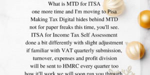 MTD for ITSA Within the bookkeepers community, this is the eye rolling moment now Oh my lord another mentioning of MTD for ITSA, everyone’s tired hearing about it …